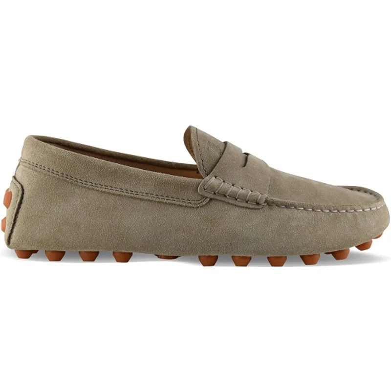 Tod's Gommino Bubble loafers in grijs suède.Gestempeld T-logo op de voorkant.Bruine rubberen zool met inkepingen.Made in Italy.