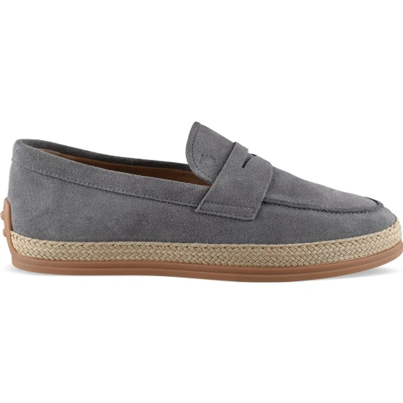 Tod's Loafers voor heren in grijs suède.Suède band aan de voorkant met het kenmerkende T-logo in reliëf op de voorkant.Rubberen zool met reliëfdetails.Raffia-rand.Made in Italy.