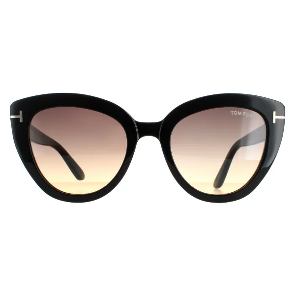 Tom Ford Cat Eye Womens Shiny Black Smoke Gradiënt Izzi FT0845 Zonnebrillen zijn een glamoureuze kattenoogstijl gemaakt van lichtgewicht acetaat. Tom Ford T's wikkel rond de hoeken om onmiddellijke merkherkenning te bieden.