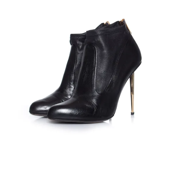 Tom Ford Zwart Goud Stiletto Enkellaarsjes.
