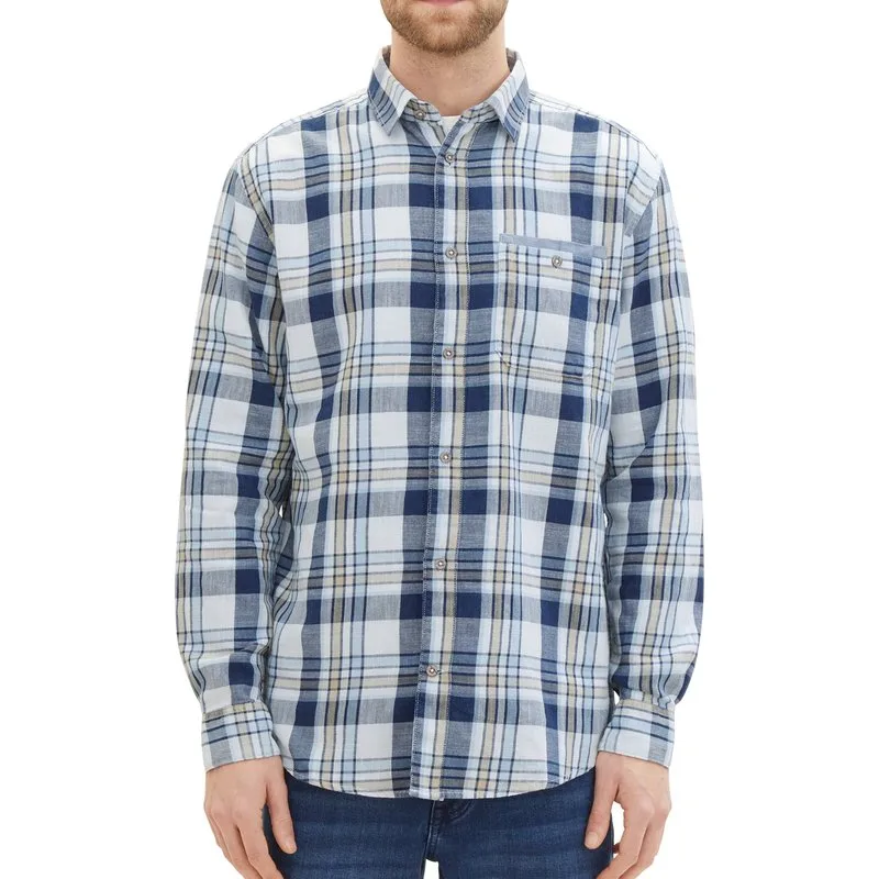 Geruit heren overhemd met lange mouwen van Tom Tailor. Regular fit Borstzakje 100% katoen Kleurnummer: 34630