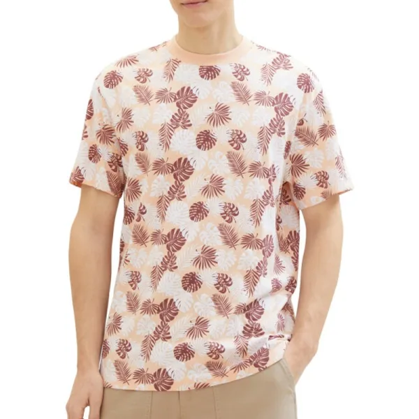 Heren T-Shirt van Tom Tailor denim met een all over dessin, korte mouwen en een ronde hals. Regular fit 100% Katoen