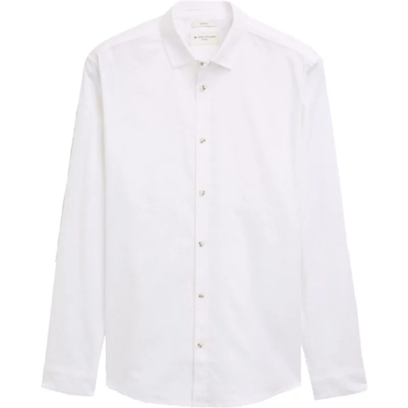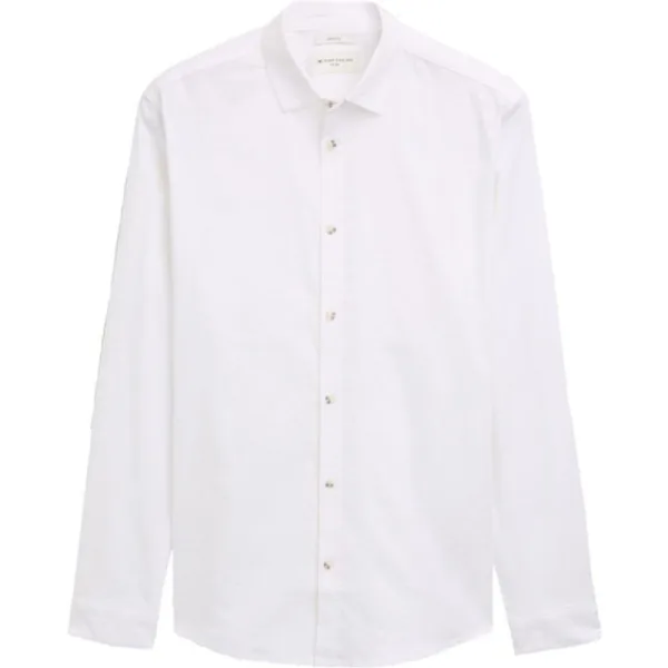Mooi linnen heren stretch overhemd in het effen wit. Dit uni Tom Tailor overhemd met lange mouwen is gemaakt van een mooie linnen-mix kwaliteit. Slim fit (Fitted) 52% Linnen/ 46% Katoen/ 2% Elasthan Kleurnummer: 20000
