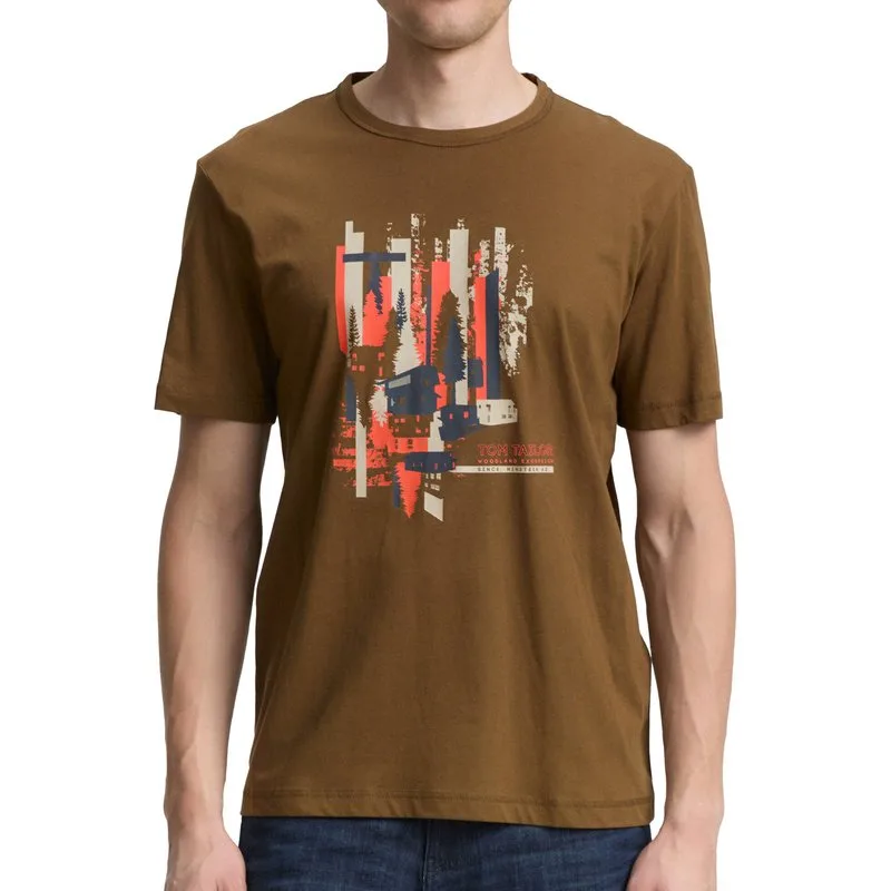 Casual heren T-shirt met ronde hals en print van het merk Tom Tailor. Regular fit 100% Katoen