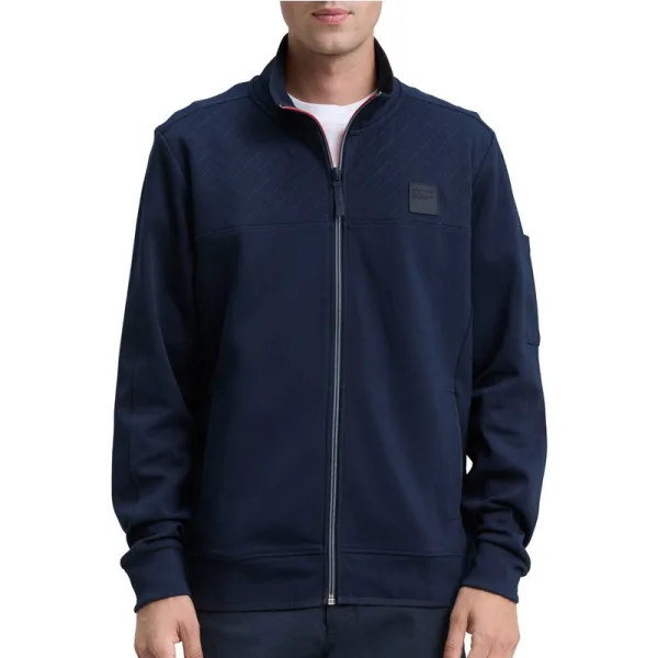 Uitgewerkt heren sweatvest van Tom Tailor met een ritssluiting. Dit donkerblauwe vest heeft een staande kraag en 2 eenvoudige steekzakken. Regular fit 80% Katoen/ 20% Polyester Kleurnummer: 10668