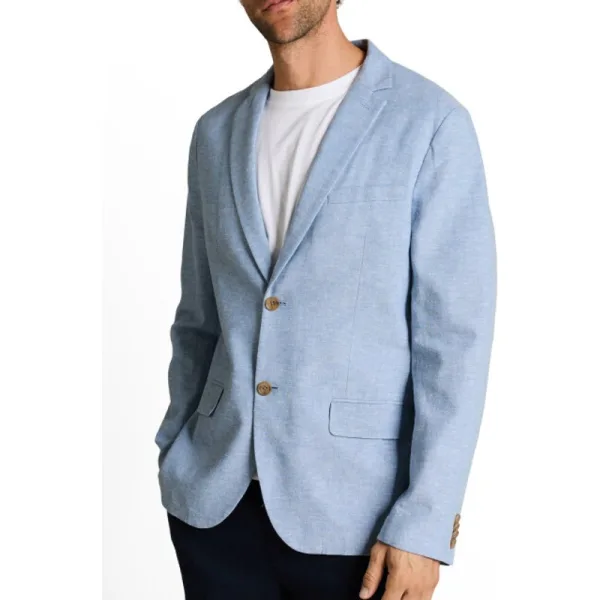 Linnen heren colbert van Tom Tailor. Dit colbert gemaakt van een linnen-katoen mix is verkrijgbaar in 2 mooie kleuren en is te combineren met de bijbehorende chino; artikel: 1049622, tot een vlot casual pak. Regular fit 55% Linnen/ 45% Katoen