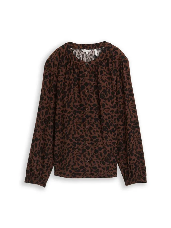 Blouse type: Klassieke blouse; Design: Gevoerde zoom/rand, Knop placket, Pofmouwen; Type sluiting: Knoopsluiting; Materiaal: Viscose; Motief: Dierenprint; Kraag: Zonder kraag; Details: Gedrapeerd; Extra's: All-over patroon, Koele grip; Pasvorm: Losse pasvorm; Armlengte: Lange mouw; Lengte: Normale lengte