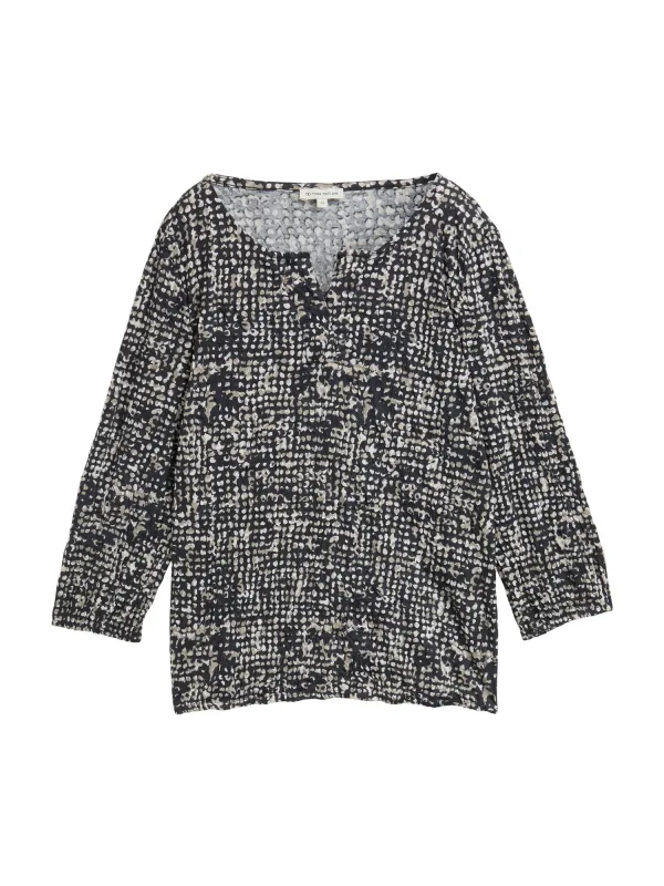 Blouse type: Wijde blouse; Design: Gevoerde zoom/rand, Rechte zoom; Materiaal: Gerecycled materiaal; Halstype: Uitgesneden hals; Kraag: Tuniek kraag; Extra's: All-over patroon, Milieuvriendelijk geproduceerd; Pasvorm: Normale pasvorm; Armlengte: Lange mouw; Lengte: Normale lengte