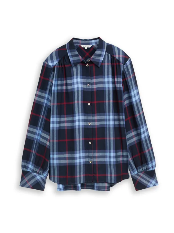 Blouse type: Klassieke blouse; Design: 2-knoops manchetten, Gevoerde zoom/rand; Type sluiting: Knoopsluiting; Materiaal: Viscose; Motief: Geruit; Kraag: Kentkraag; Details: Gedrapeerd; Extra's: All-over patroon, Huidvriendelijk materiaal; Pasvorm: Losse pasvorm; Armlengte: Lange mouw; Lengte: Normale lengte