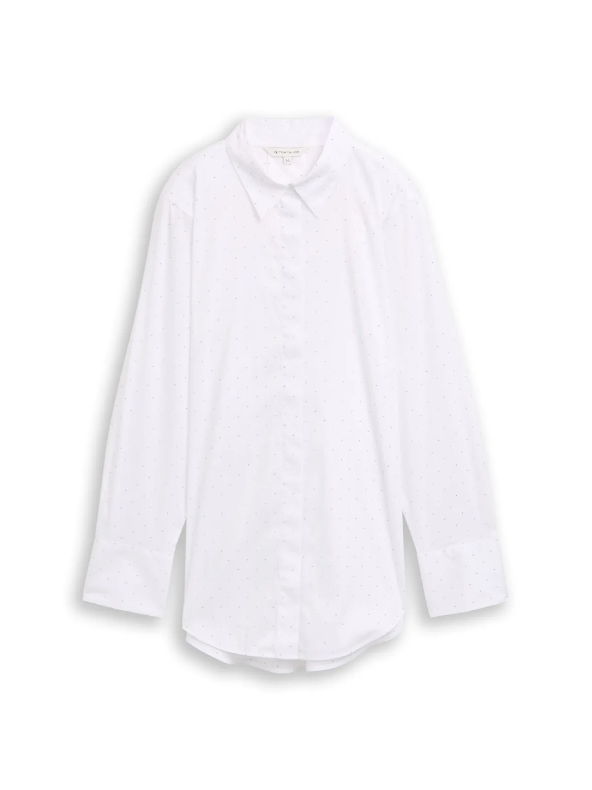 Tom Tailor Losvallende blouse met strasssteentjes met onderhoudsvriendelijke katoen