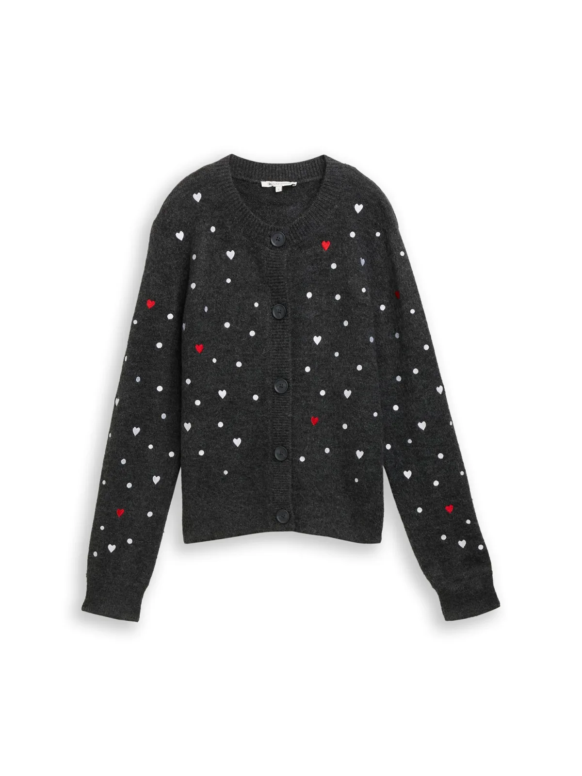 TOM TAILOR DENIM Gebreid vest antraciet / rood / wit
