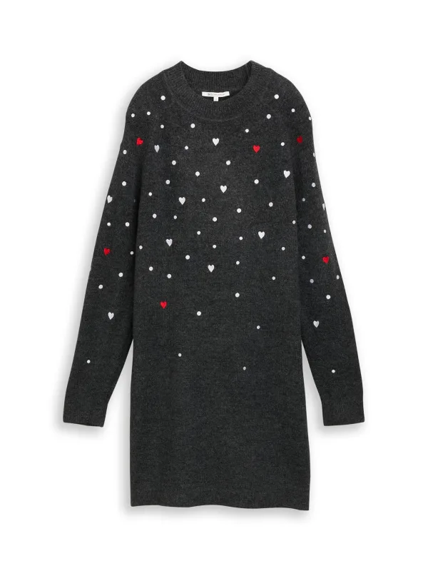 TOM TAILOR DENIM Gebreide jurk rood zwart gemeleerd wit