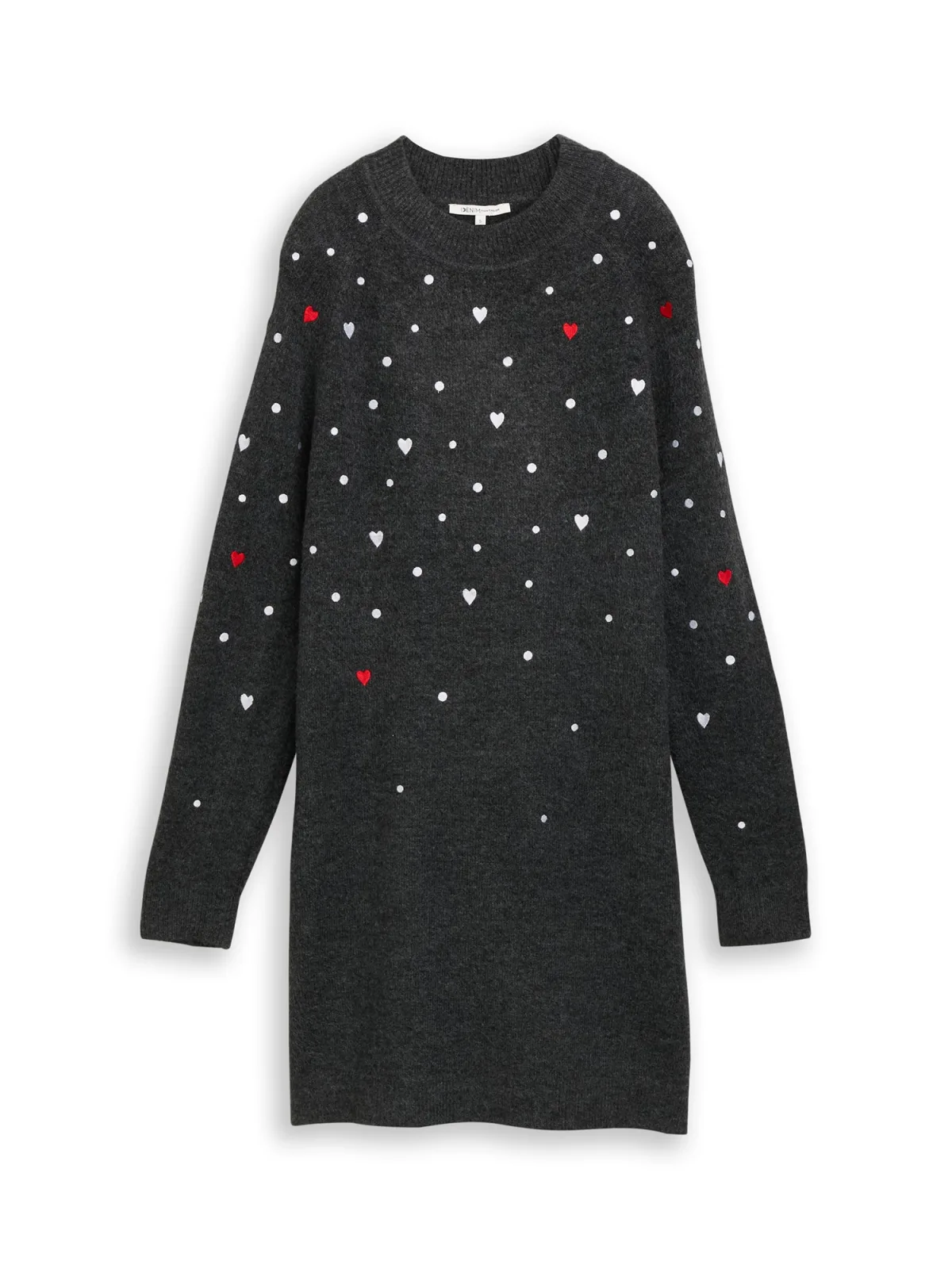 Specificaties: TOM TAILOR DENIM Gebreide jurk rood / zwart gemêleerd / wit