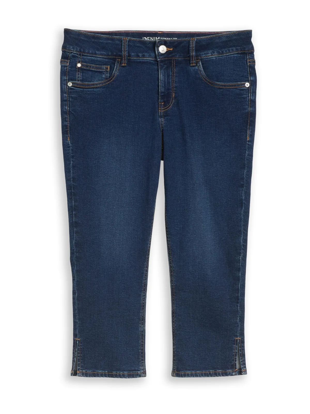 Design: Ritssluiting, 5-pocket-style; Type sluiting: Ritssluiting; Materiaal: Denim; Motief: Effen; Extra's: Contrasterende naden, Gewassen effect, Vaste grip; Wassing: Heavy washed; Lengte: 3/4 lengte; Pasvorm: Slimfit; Taillehoogte: Mid waist