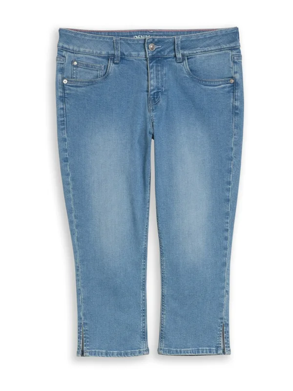 Design: Ritssluiting, 5-pocket-style; Type sluiting: Ritssluiting; Materiaal: Denim; Motief: Effen; Extra's: Vaste grip, Riemlussen; Wassing: Heavy washed; Lengte: 3/4 lengte; Pasvorm: Slimfit; Taillehoogte: Mid waist