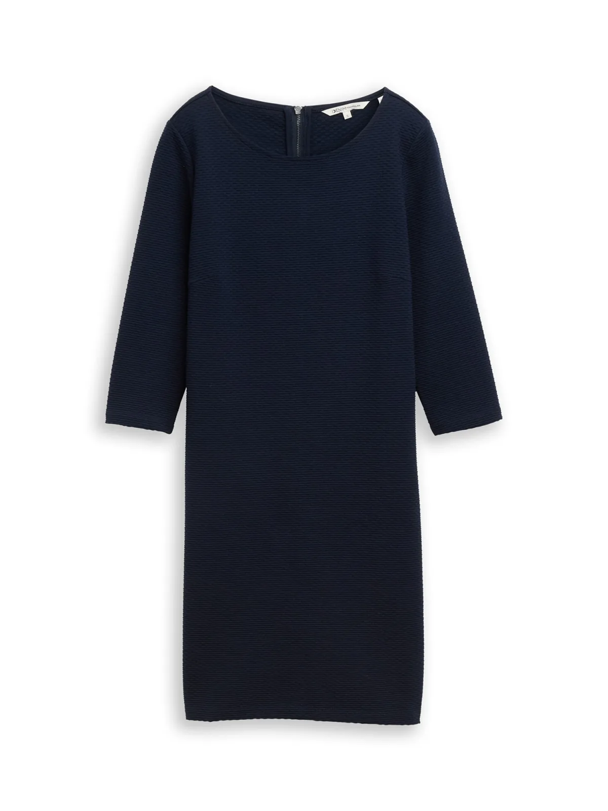 Design: Gevoerde zoom/rand, Rechte zoom, Rug rits; Type sluiting: Ritssluiting; Materiaal: Katoen; Halstype: Ronde hals; Motief: Effen; Extra's: Gestructureerd oppervlak, Op staal naden, Voelt zacht aan, Milieuvriendelijk geproduceerd; Lengte: Kort/mini; Snit: Getailleerd; Pasvorm: Slanke pasvorm; Armlengte: Driekwart mouw