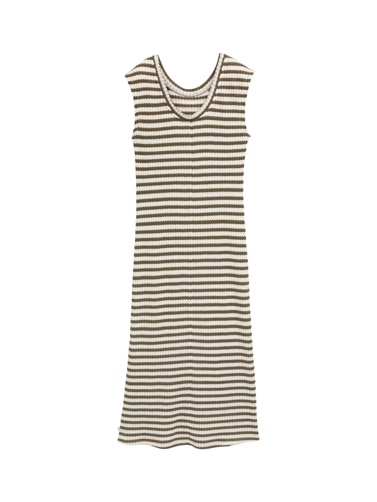 Design: Gevoerde zoom/rand; Materiaal: Katoen; Halstype: Ronde hals; Motief: Gestreept; Soort bandjes: Normale bandjes; Extra’s: Op staal naden; Lengte: 7/8 lengte; Pasvorm: Slanke pasvorm; Armlengte: Mouwloos