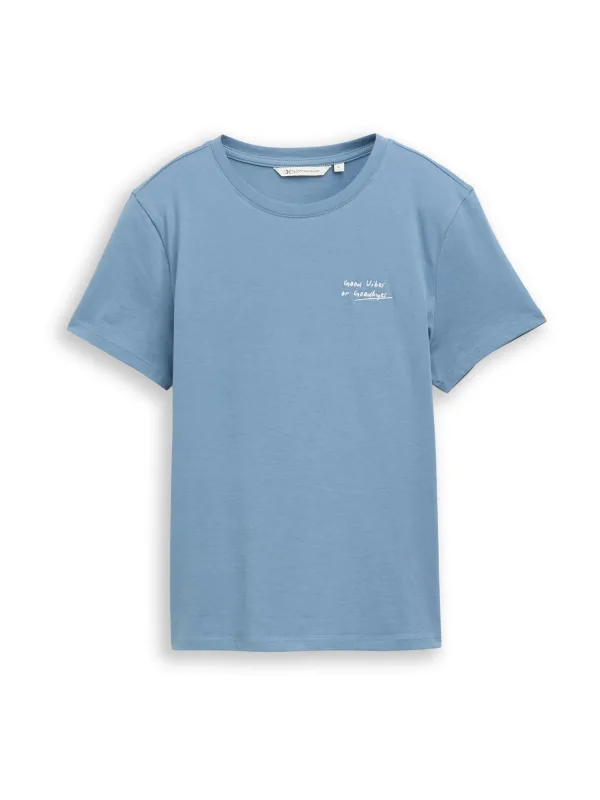 dames T-shirt van Tom Tailor Denim;look: effen;Pasvorm: regular fit;Applicatie: statement-stitching;hals: ronde hals;mouwvorm: korte mouw;materiaalverwerking: jersey;Materiaal: puur katoen