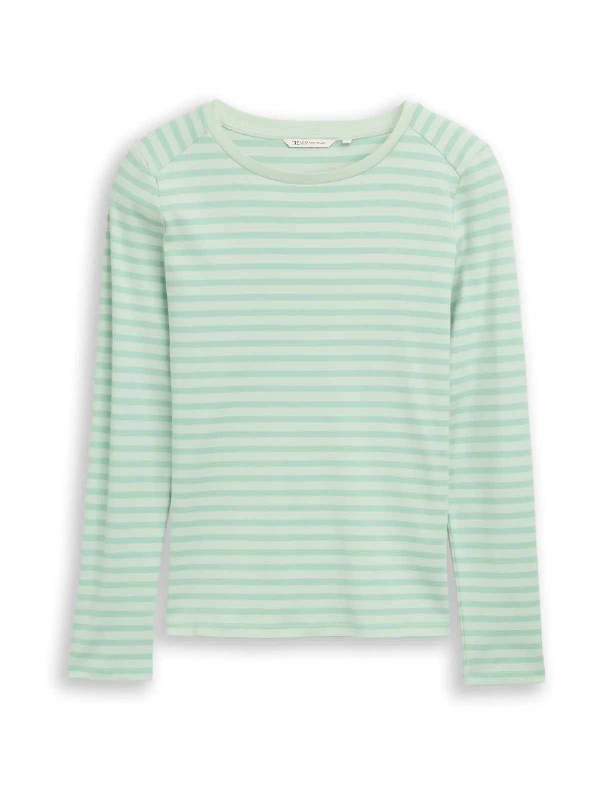 Damesshirt met lange mouwen van Tom Tailor Denim;Look: All-over motief;Pasvorm: Regular fit ;Hals: ronde hals;Mouwvorm: lange mouwen;Materiaalverwerking: Interlock;Materiaal: puur biologisch katoen