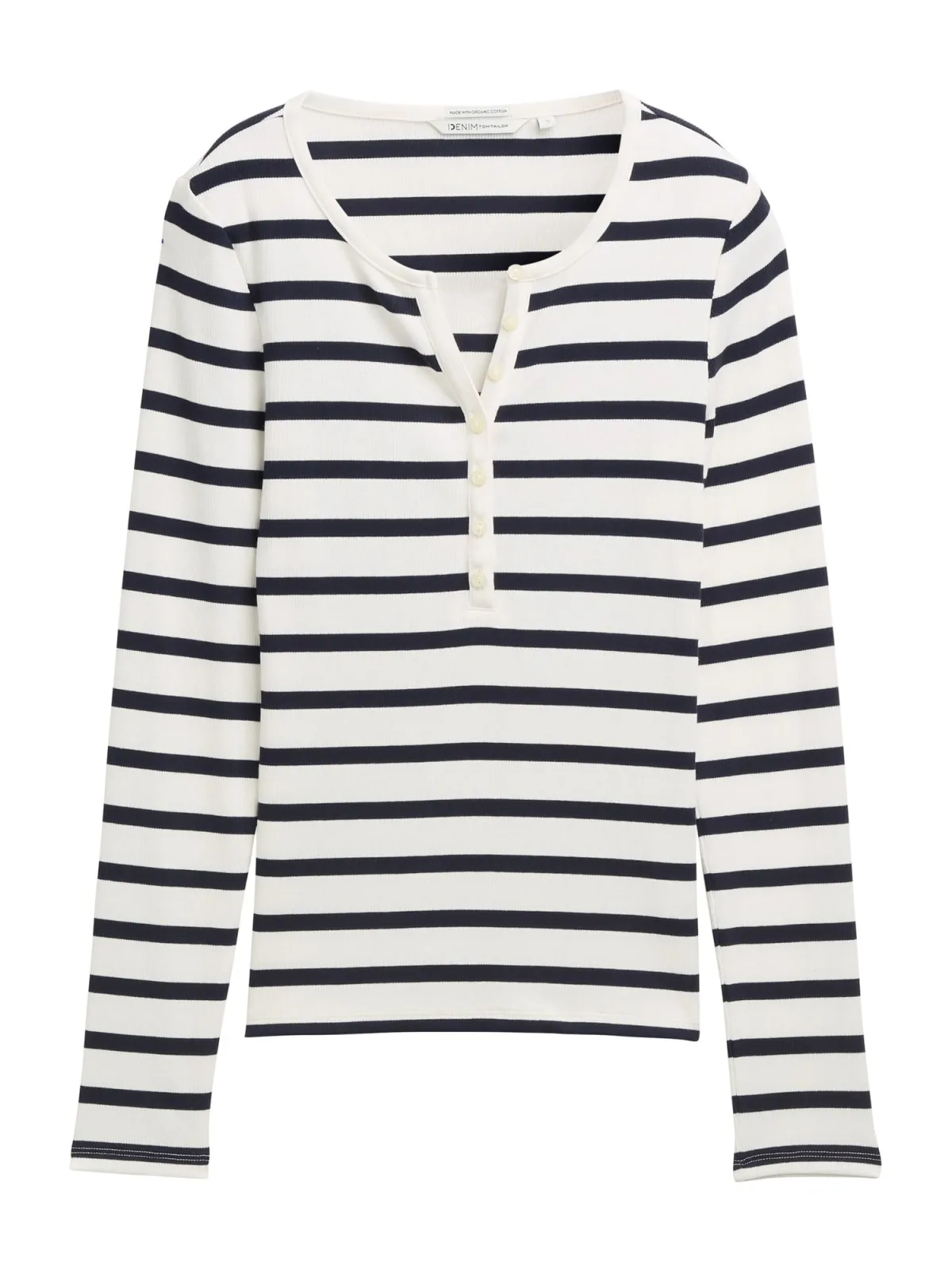 Tom Tailor Denim Slim fit Henley-shirt met lange mouwen Frauen