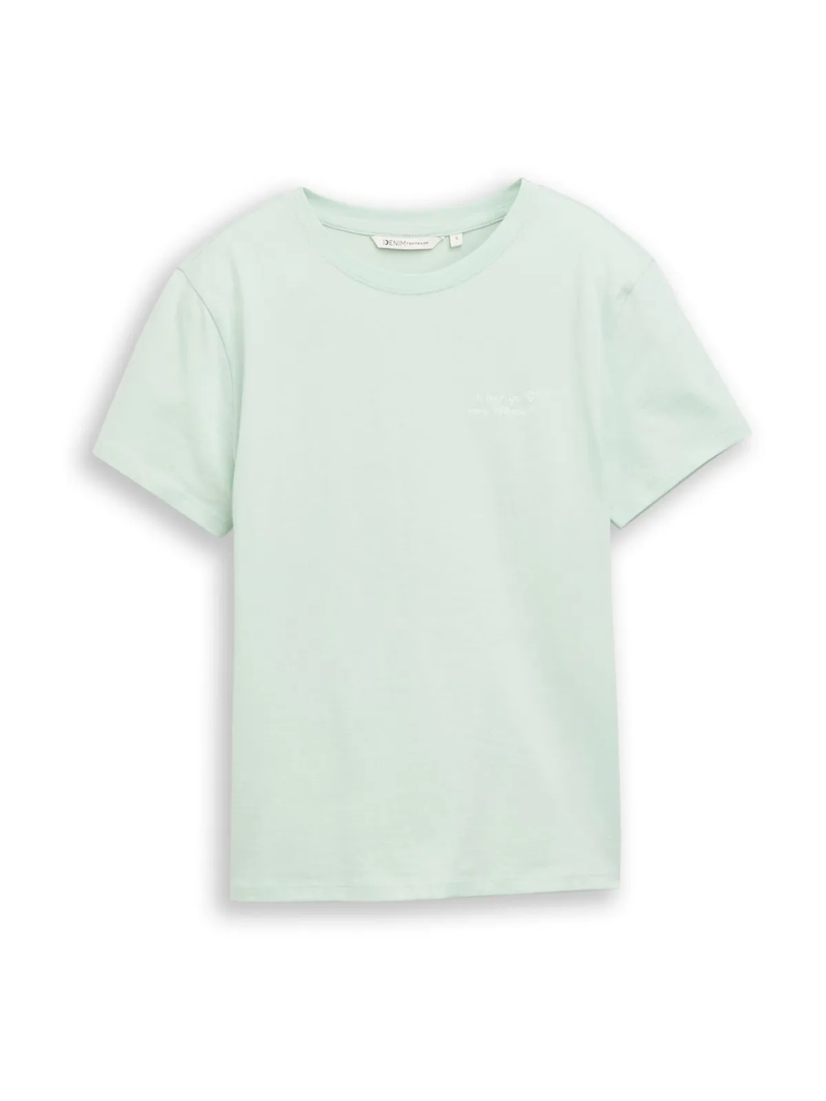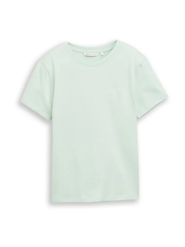 dames T-shirt van Tom Tailor Denim;look: effen;Pasvorm: regular fit;Applicatie: statement-stitching;hals: ronde hals;mouwvorm: korte mouw;materiaalverwerking: jersey;Materiaal: puur katoen