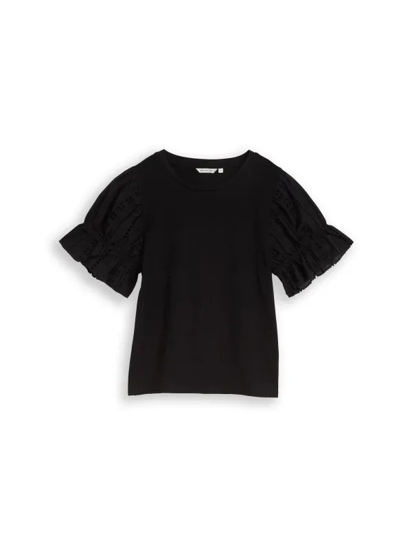 Tom Tailor Denim Loose fit Tshirt met opengewerkte borduursels
