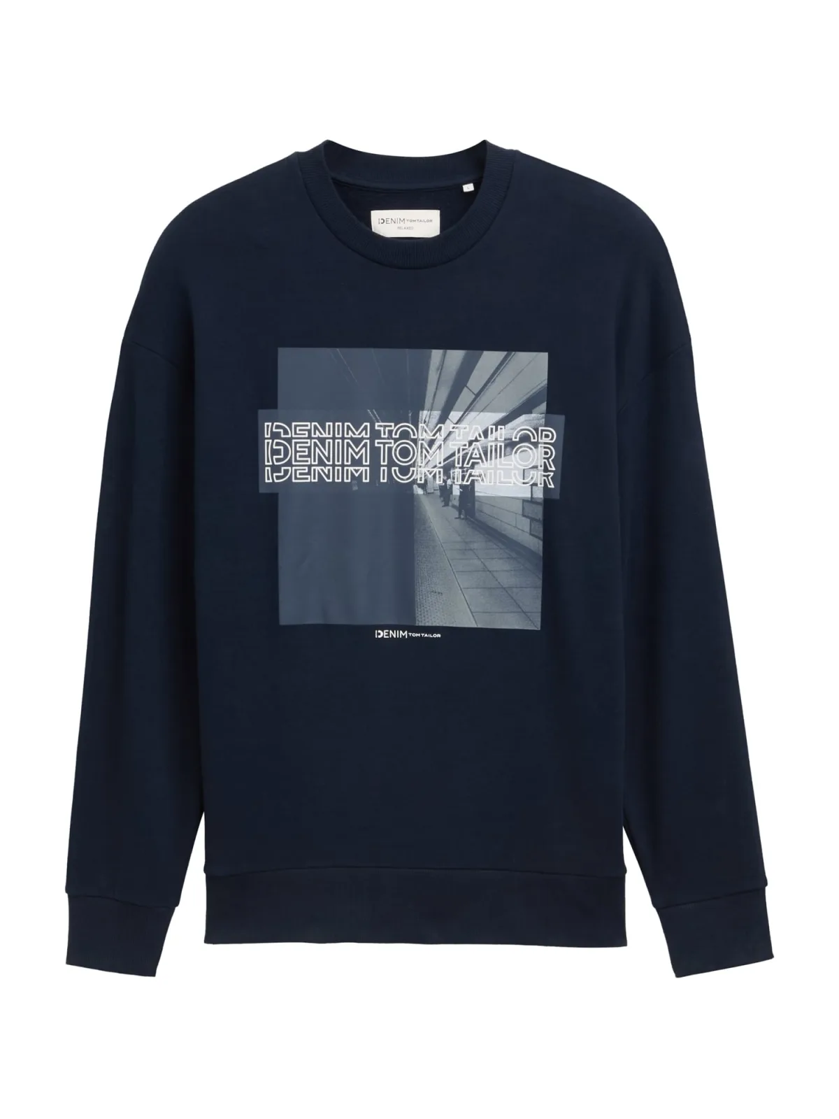 TOM TAILOR DENIM Sweatshirt navy / smoky blue / grijs / wit