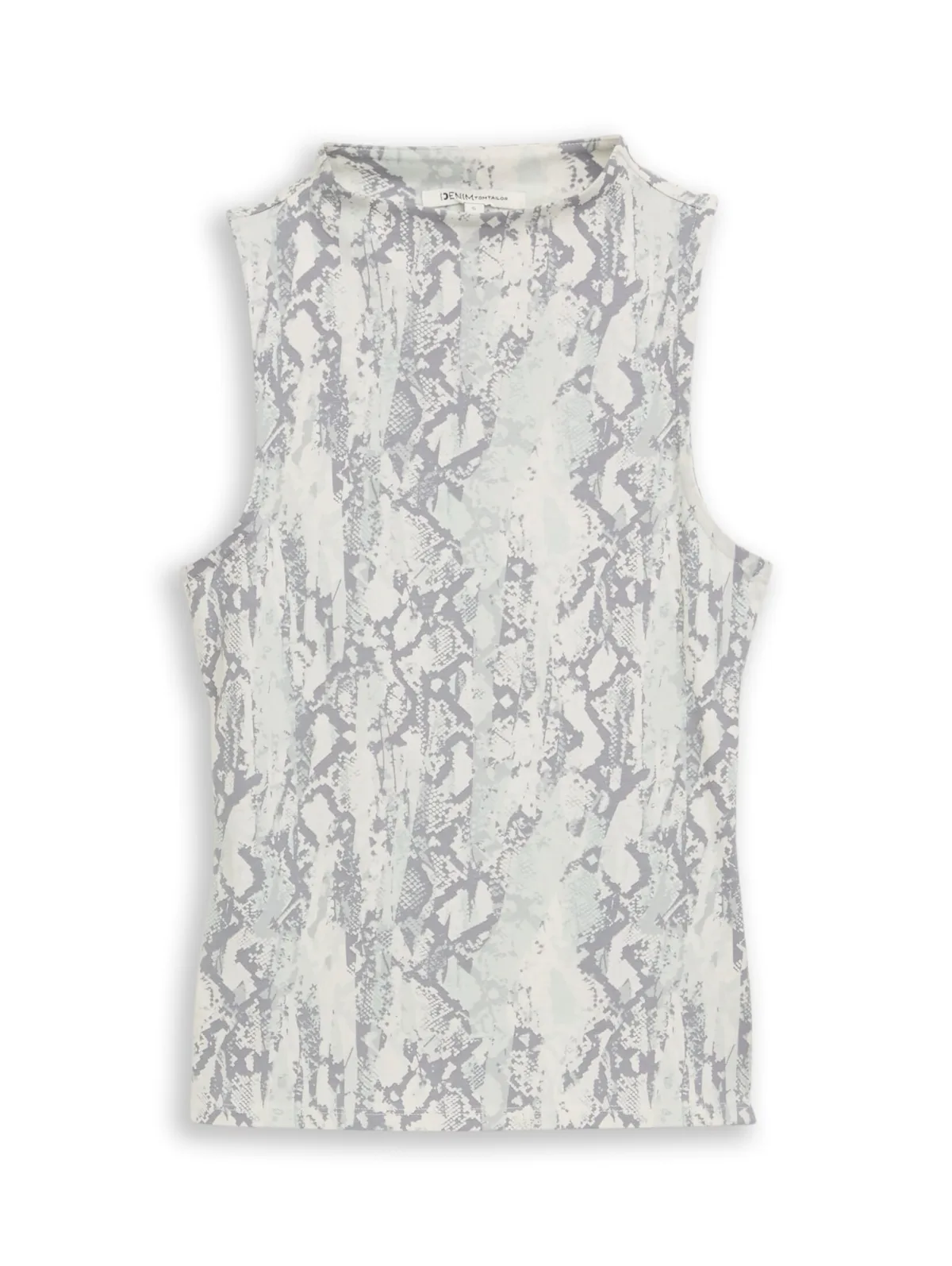 Design: Gevoerde zoom/rand; Materiaal: Jersey; Halstype: Opstaande kraag; Motief: Dierenprint; Soort bandjes: Brede bandjes; Extra's: All-over patroon; Pasvorm: Slanke pasvorm; Armlengte: Mouwloos; Lengte: Normale lengte