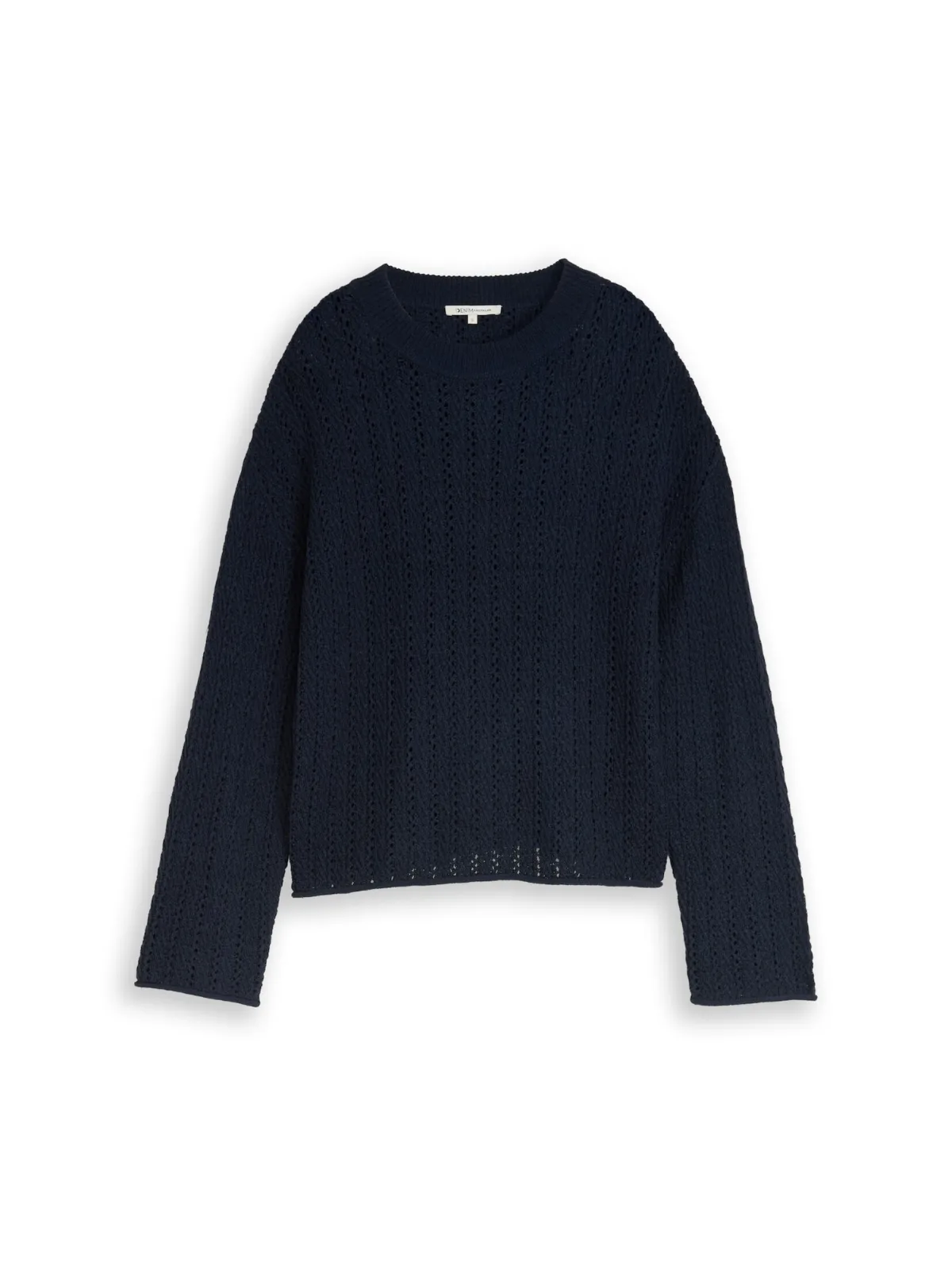 Design: Geribbelde kraag, Overcut schouder; Materiaal: Knitwear; Halstype: Ronde hals; Motief: Effen; Details: Mesh; Extra's: Met textuur; Pasvorm: Losse pasvorm; Armlengte: Lange mouw; Lengte: Normale lengte