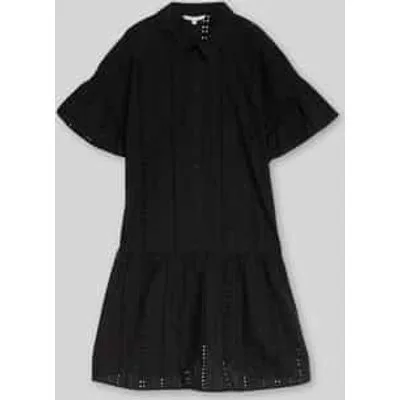 dames vrijetijdsjurk van Tom Tailor Denim;look: effen;pasvorm/model:: uitlopend;Lengte: mini;hals: overhemdkraag;sluiting: korte knoopsluiting;mouwvorm: korte mouw;Materiaalverwerking: ajourwerk;Materiaal: puur katoen