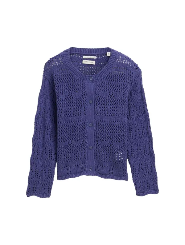 Design: Geribbelde kraag; Type sluiting: Knoopsluiting; Materiaal: Knitwear; Halstype: Ronde hals; Motief: Effen; Details: Mesh; Extra's: Transparant; Pasvorm: Normale pasvorm; Armlengte: Lange mouw; Lengte: Normale lengte