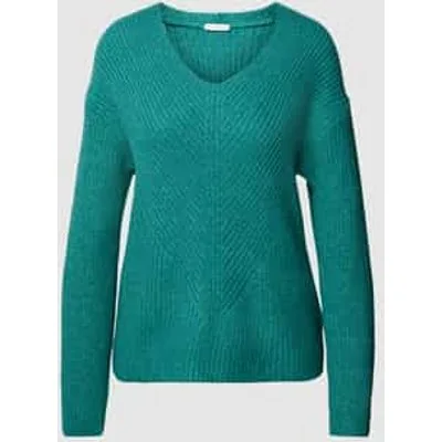 Gebreide damespullover van TOM TAILOR;Katoenmix;Recht model;Melangelook;V-hals;Verbrede schouders;Ruglengte bij maat S: 62 cm;Mouwlengte bij maat S: 63 cm