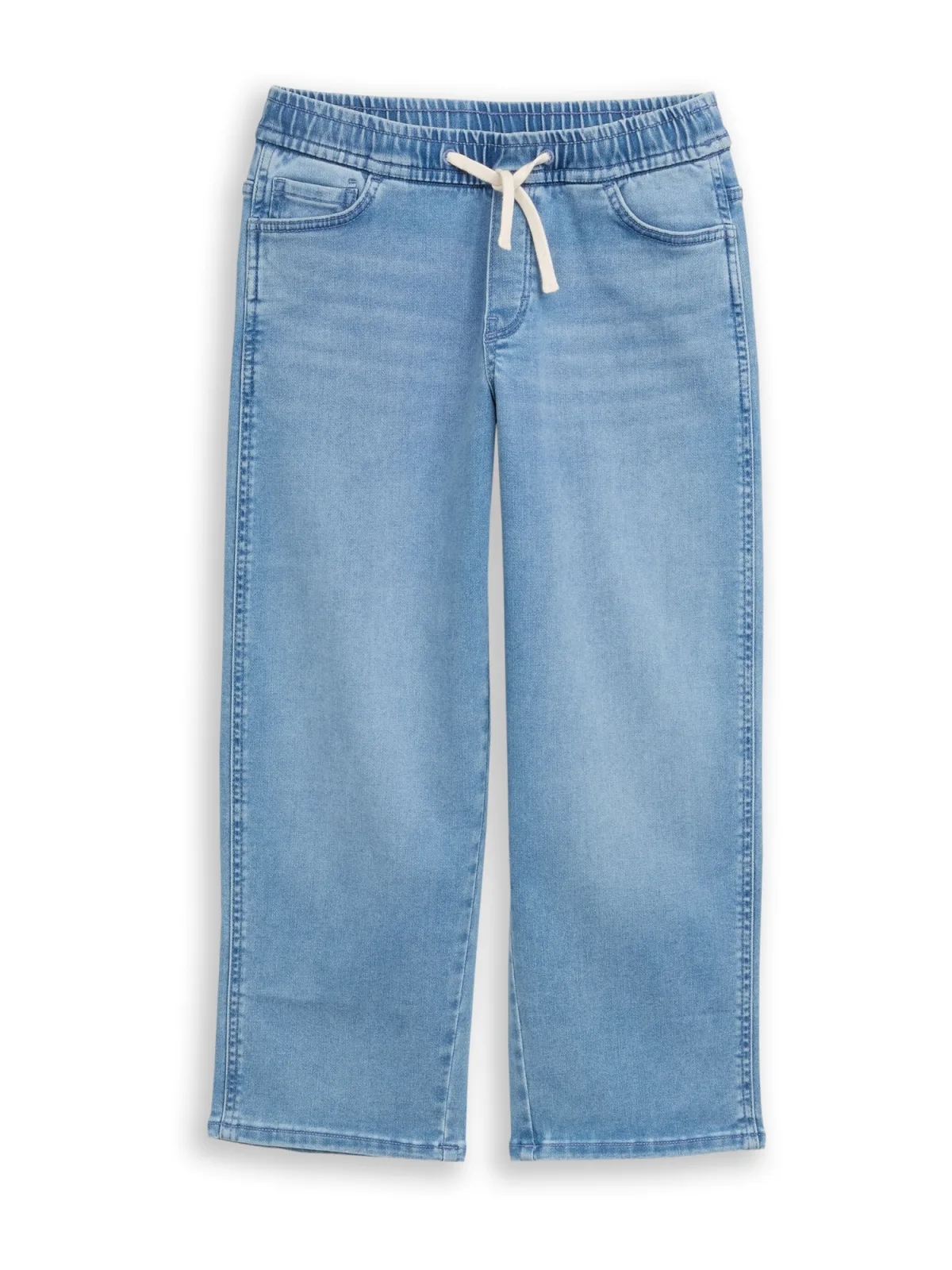 Design: Gevoerde zoom/rand, Taille met trekkoord, Elastische taille/zoom, 5-pocket-style; Materiaal: Denim; Motief: Effen; Extra’s: Op staal naden, Vaste grip; Wassing: Light washed; Lengte: Lang/maxi; Pasvorm: Loosefit