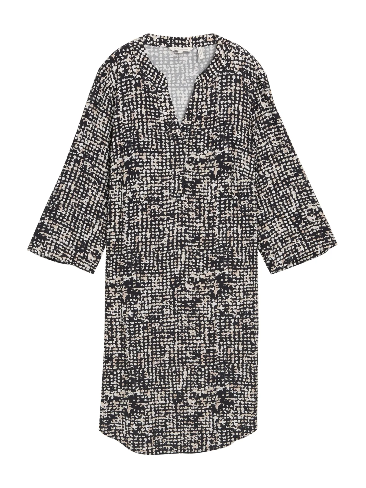Design: Ronde zoom, Diepe snit/decolleté; Materiaal: Linnen; Halstype: Uitgesneden hals; Extra's: All-over patroon, Lichte stof; Lengte: Knielengte; Snit: Recht; Pasvorm: Losse pasvorm; Armlengte: Driekwart mouw
