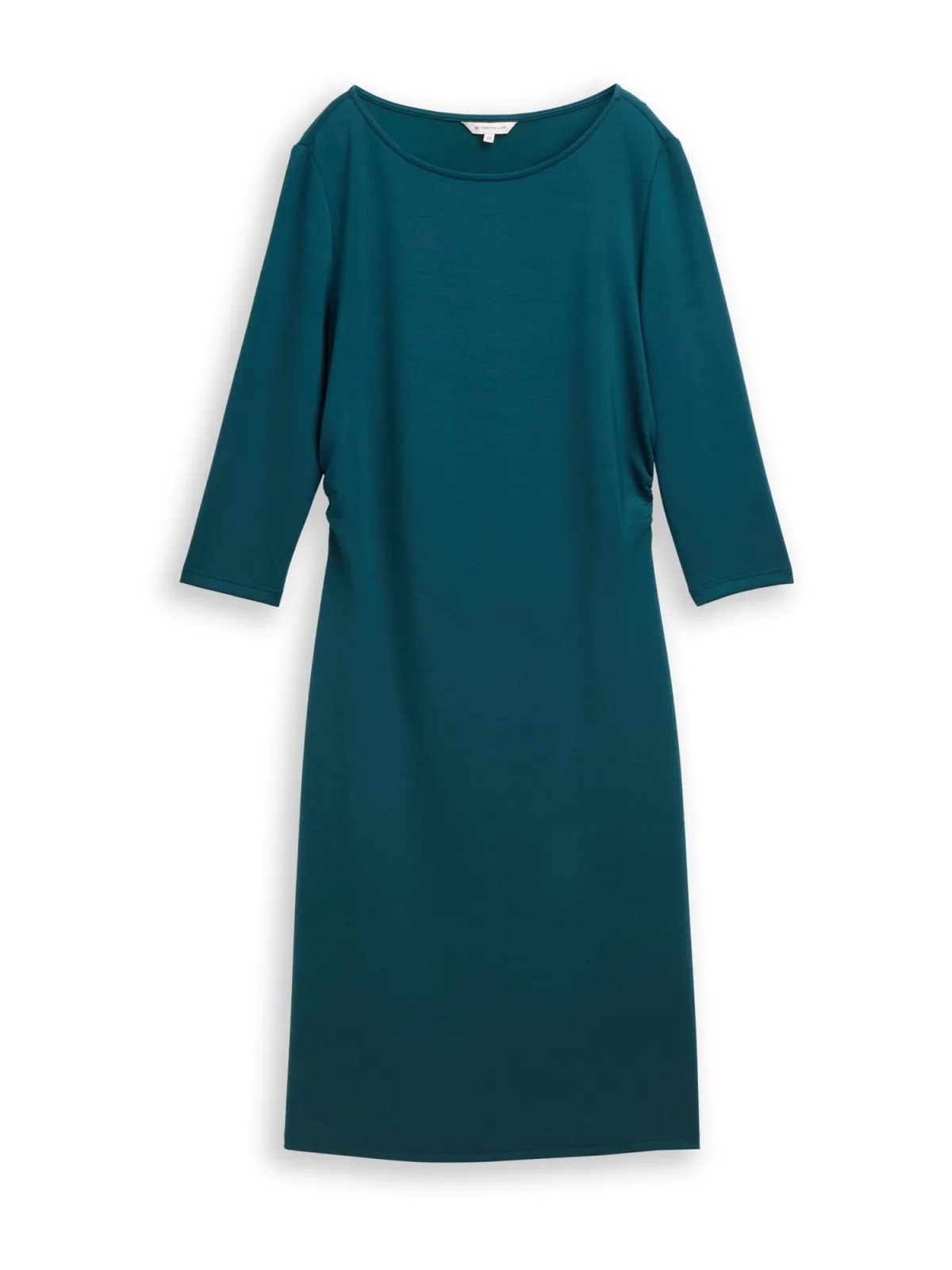 Design: Gevoerde zoom/rand, Rechte zoom; Materiaal: Jersey; Halstype: Boothals; Motief: Effen; Details: Gedrapeerd; Extra's: Op staal naden, Voelt zacht aan; Lengte: Knielengte; Snit: Getailleerd; Pasvorm: Normale pasvorm; Armlengte: Driekwart mouw