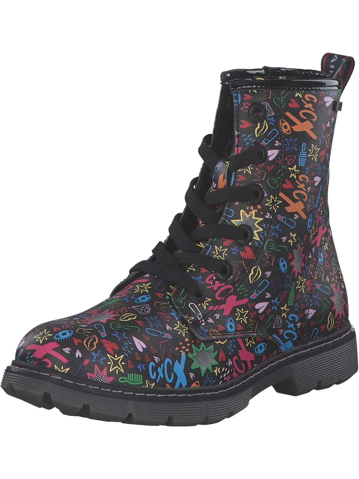 Design: Vetering met 6 gaten, Profielzolen, Versterkte hak, Hielband; Type sluiting: Ritssluiting; Materiaal: Imitatieleder; Materiaal: Imitatieleer; Schoenneus: Ronde neus; Extra's: All-over patroon, Waterafstotend, Flexibele zool, Metalen oogjes; Hakhoogte: Platte hak (0-3 cm)