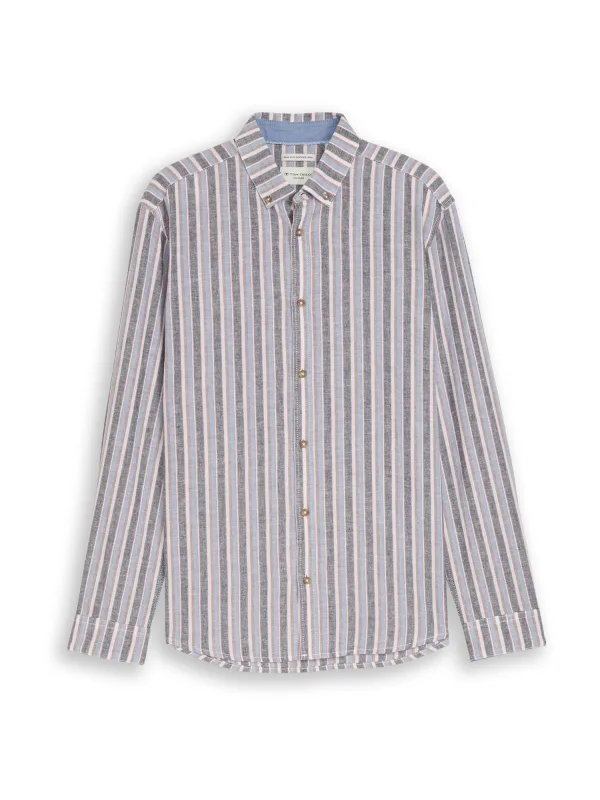 Design: 1-knoops manchetten, Knop placket; Type sluiting: Knoopsluiting; Materiaal: Linnen; Motief: Gestreept; Kraag: Button-down; Extra's: All-over patroon, Voelt zacht aan; Pasvorm: Normale pasvorm; Pasvorm: Regular fit; Armlengte: Lange mouw