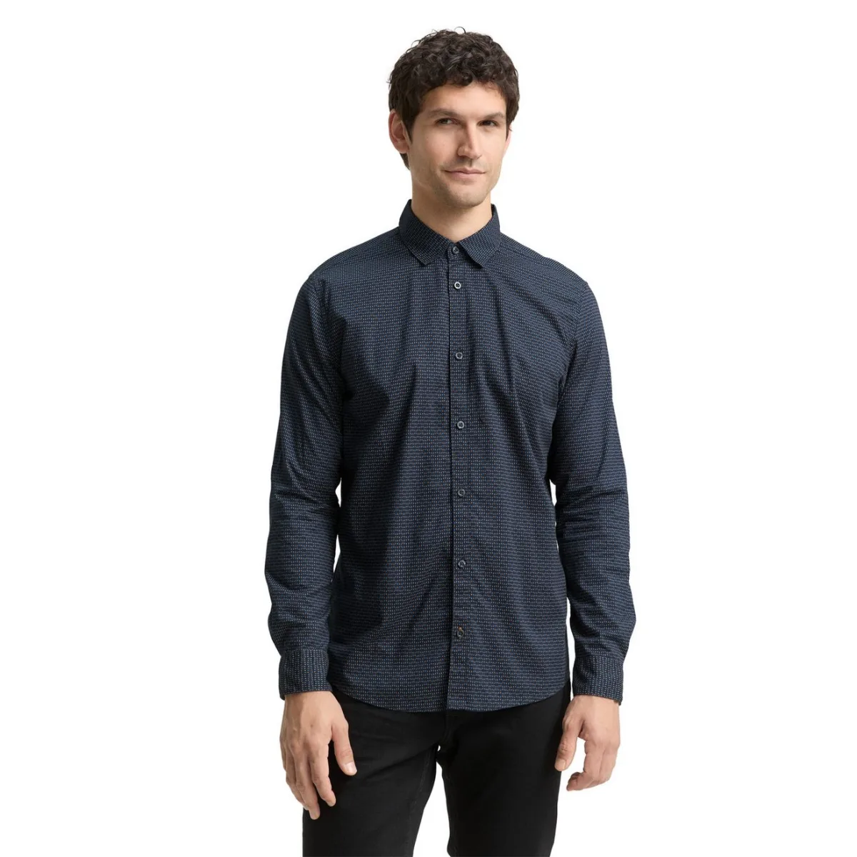 Fitted heren shirt van Tom Tailor met lange mouwen met een kleine subtiele allover print.. Fitted fit (getailleerd) 97% Katoen/ 3% Elasthan Kleurnummer: 38970