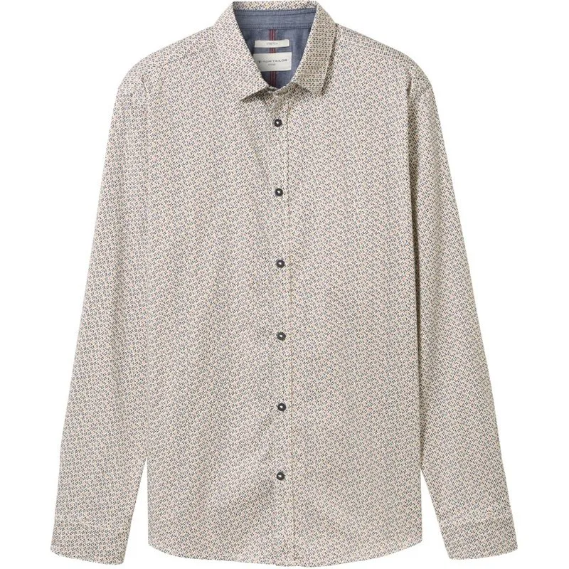 Tom Tailor Printed stretch shirt ecru dessin Prijzen