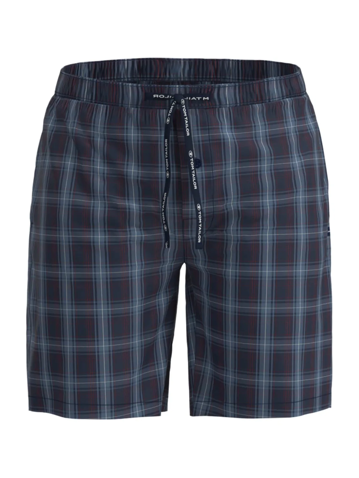 TOM TAILOR Pyjamabroek ‘Bermuda’ blauw / navy / donkerrood
