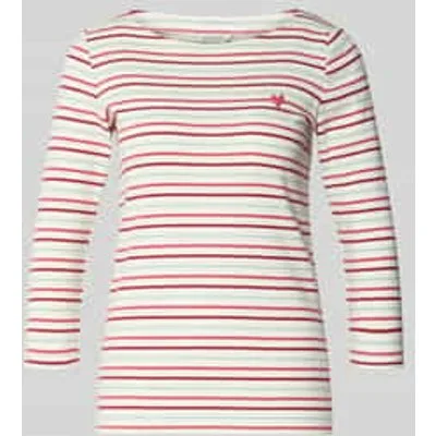 Damesshirt met 3/4-mouwen van Tom Tailor;Look: All-over motief;Pasvorm: Regular fit ;Motief: gestreept;Applicatie: Tekstprint;Hals: Boothals;Mouwvorm: 3/4-mouw;Materiaal: Katoenmix