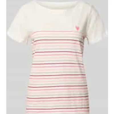 dames T-shirt van Tom Tailor;look: all-over motief;Pasvorm: regular fit;Patroon: gestreept;Applicatie: labelprint, hartjesprint;hals: boothals;mouwvorm: korte mouw;Materiaal: puur biologisch katoen