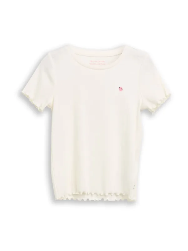 Design: Geribbelde kraag, Gerolde boord, Nektape; Materiaal: Jersey; Halstype: Ronde hals; Motief: Effen; Extra's: Gestructureerd oppervlak, Op staal naden, Voelt zacht aan, Huidvriendelijk materiaal, Milieuvriendelijk geproduceerd; Pasvorm: Normale pasvorm; Armlengte: Kwartmouw; Lengte: Normale lengte