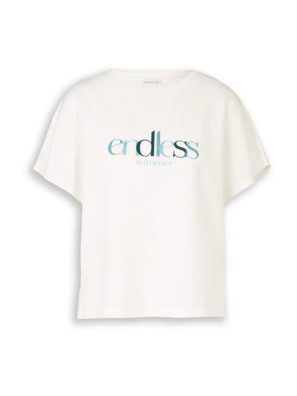 Design: Gevoerde zoom/rand, Gesneden mouw, Recht model; Materiaal: Jersey; Halstype: Ronde hals; Motief: Tekst print; Details: Borduursels; Extra's: Voelt zacht aan; Pasvorm: Losse pasvorm; Armlengte: Kwartmouw; Lengte: Normale lengte
