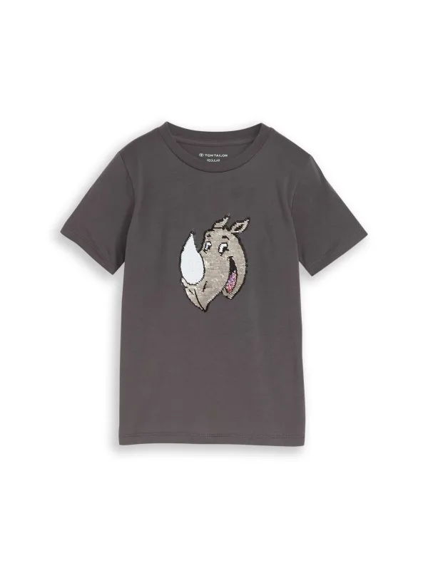 Design: Recht model; Materiaal: Jersey; Halstype: Ronde hals; Motief: Motiefprint; Extra's: Omkeerbare pailletten; Pasvorm: Normale pasvorm; Armlengte: Kwartmouw