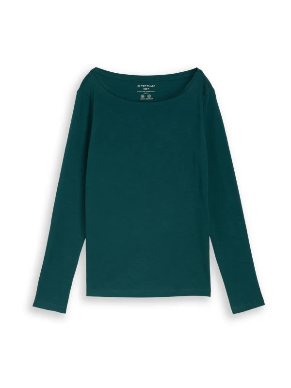Dames shirt met lange mouwen van Tom Tailor;Look: Mêlee;Pasvorm: Regular Fit;Hals: Boothals;Mouwvorm: lange mouw;Materiaal: Mix van biologisch katoen