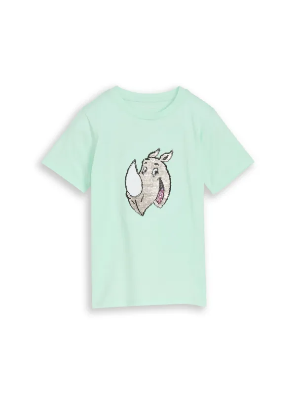 Design: Gevoerde zoom/rand, Rechte zoom; Type sluiting: Slip; Materiaal: Jersey; Halstype: Ronde hals; Motief: Motiefprint; Details: Pailletten; Extra's: Voelt zacht aan, Omkeerbare pailletten; Pasvorm: Normale pasvorm; Armlengte: Kwartmouw; Lengte: Normale lengte