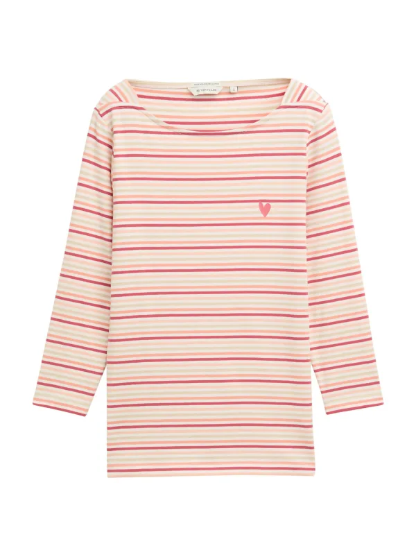 Design: Gevoerde zoom/rand, Rechte zoom; Materiaal: Jersey; Halstype: Boothals; Motief: Gestreept; Extra's: All-over patroon, Voelt zacht aan; Pasvorm: Normale pasvorm; Armlengte: Driekwart mouw; Lengte: Normale lengte