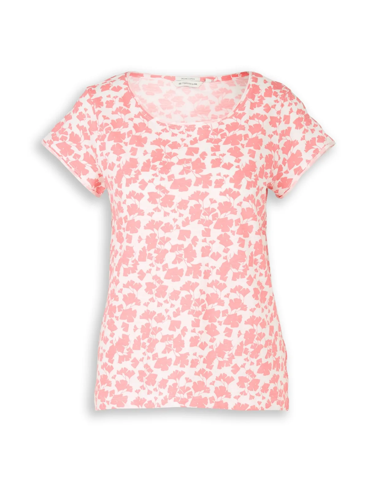 dames T-shirt van Tom Tailor;look: all-over motief/effen kleuren;Pasvorm: relaxed fit;hals: ronde hals;mouwvorm: korte mouw;Mouwboord: rolzoom;Materiaal: puur katoen