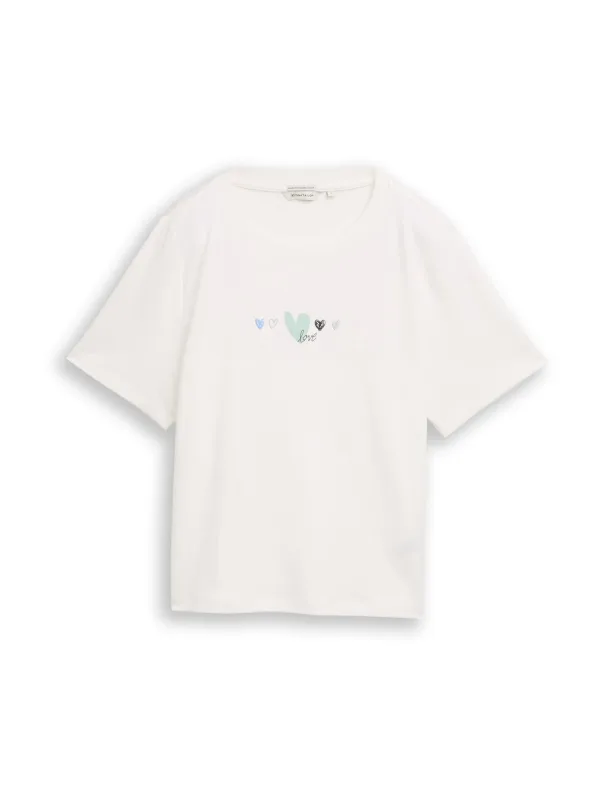 dames T-shirt van Tom Tailor;look: effen;Pasvorm: relaxed fit;Applicatie: motiefprint;hals: ronde hals;mouwvorm: korte mouw;Materiaal: puur katoen